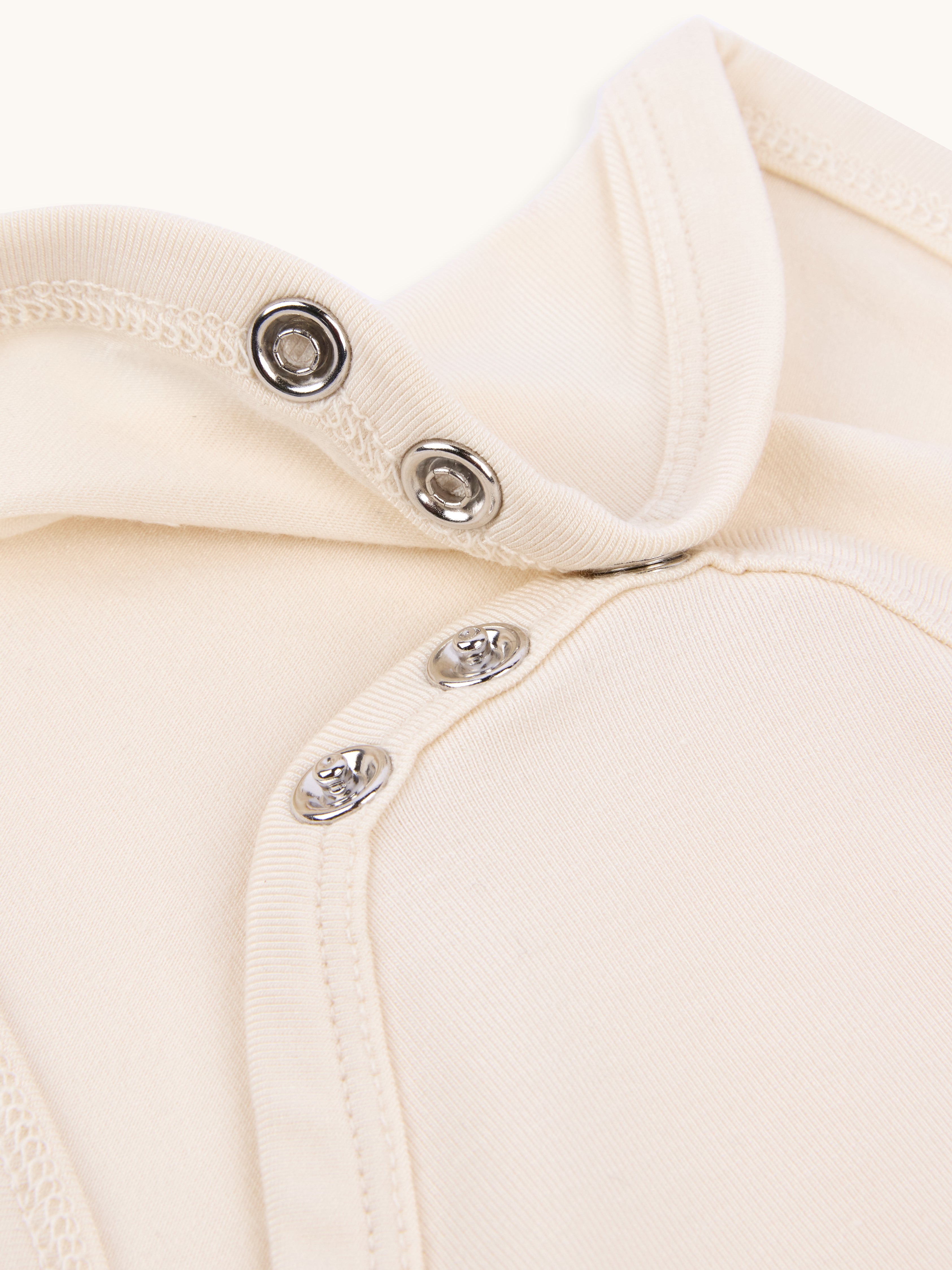 Introducing the Farren Baby Long Sleeve Onesie from our Nido Collection, thoughtfully designed with a Montessori-inspired approach. This non-gendered baby onesie promotes independence and sensory learning as well as optimal snugness. Crafted from our soft yet durable bamboo fabric blend, keeping your baby snug while allowing them to move freely and explore. The non-restrictive design supports natural gross motor development, adapting seamlessly to their movements and environment. Ideal for all climates, it maintains warmth, wicks moisture, and ensures breathability. The envelope neckline and smooth seams offer supreme comfort, making it perfect as a standalone outfit or an extra layer.